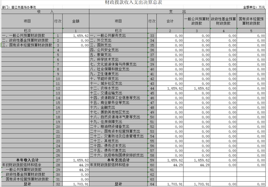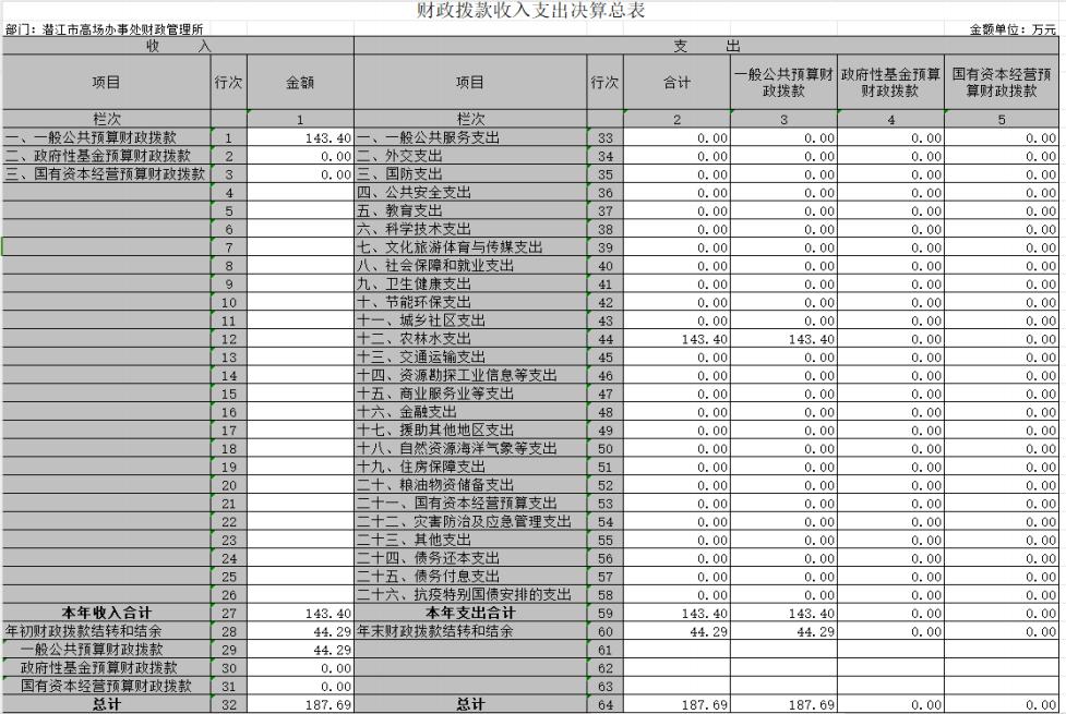 2022年度财政拨款收入总计1703.91 万元,包括政府1516.2万元,财政187.69万元。其中本年一般公共预算拨款收入1659.62 万元,年初财政拨款结转和结余44.29 万元。2022年度财政拨款支出总计1703.91 万元,包括政府1516.2万元,财政187.69万元。其中本年一般公共预算拨款支出1659.62 万元,年末财政拨款结转和结余44.29万元。与2021年度相比,财政拨款收、支总计各增加704.55 万元,增长73.7%。主要原因是主要原因是发2020-2022年在职退休人员奖励绩效。