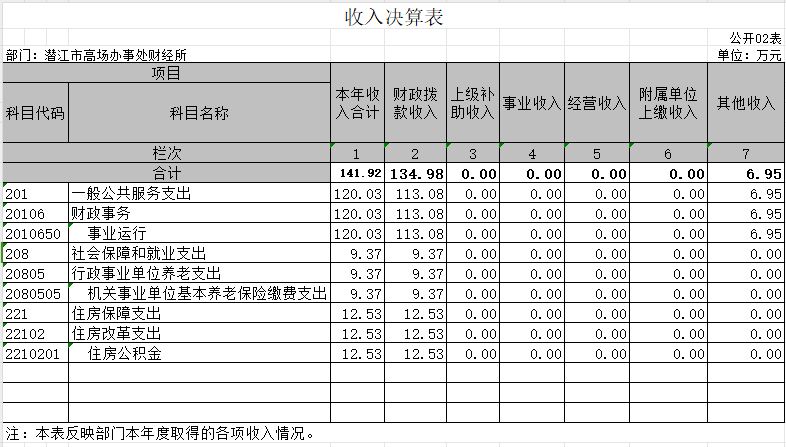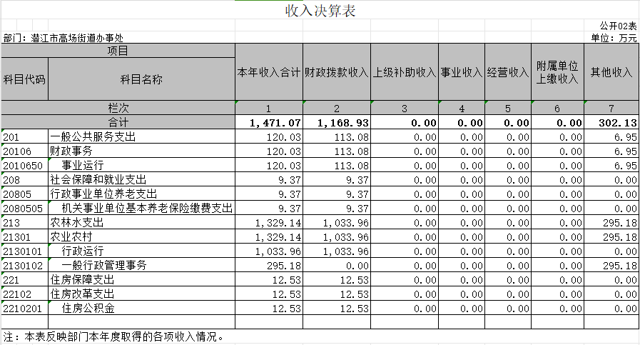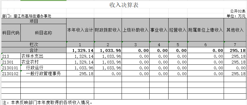 收入决算表