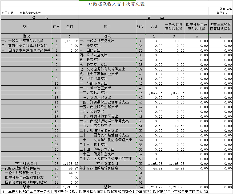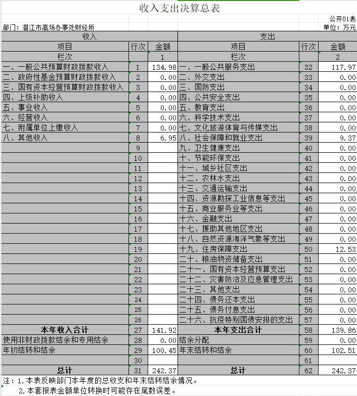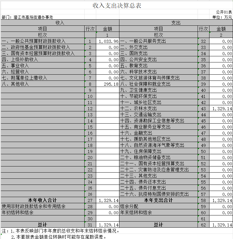 1、收入支出决算总表