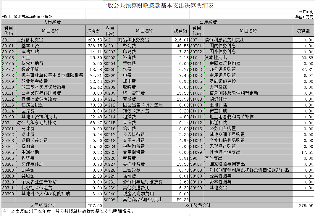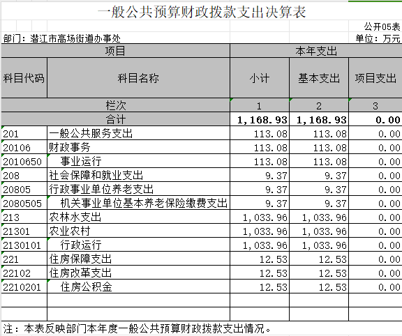 1.一般公共服务(类)财政事务(款)行政运行(项)。反映行政单位(包括实行公务员管理的事业单位)的基本支出。