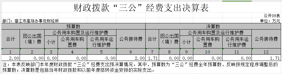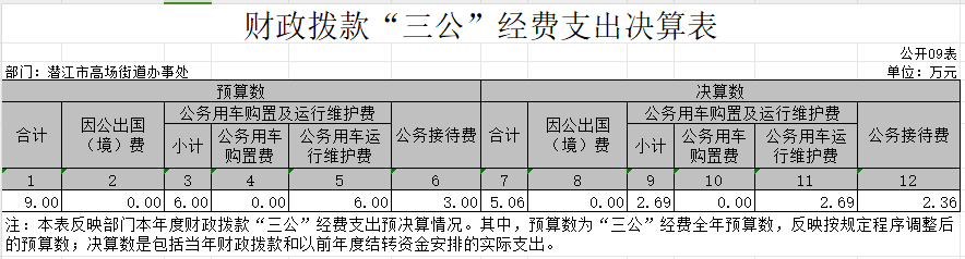 9、财政拨款 “三公”经费支出决算表