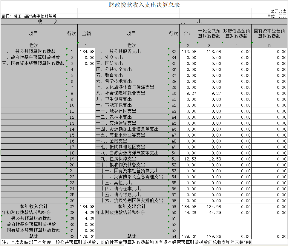 财政拨款收入支出决算总表