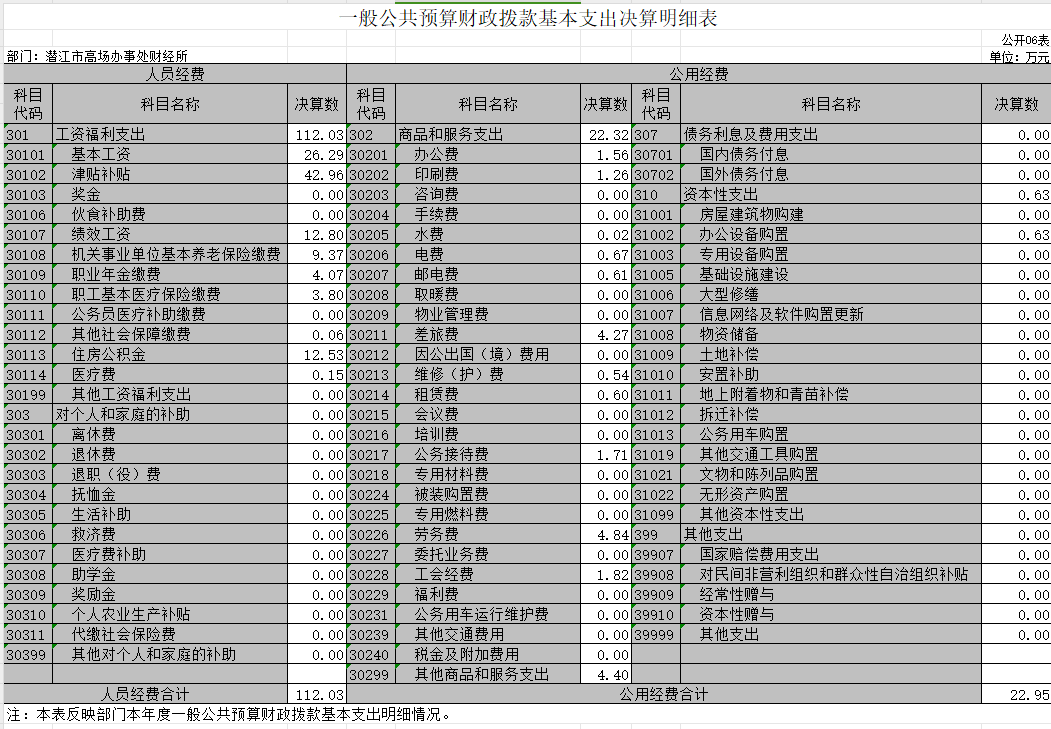 一般公共预算财政拨款基本支出决算明细表