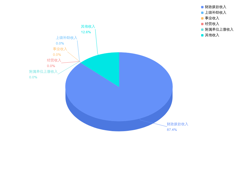 2024年度收入合计1354.10万元,与2023年度相比,收入合计减少116.97万元,下降8.0%。其中:财政拨款收入1182.87万元,占本年收入87.4%;上级补助收入0.00万元,占本年收入0.0%;事业收入0.00万元,占本年收入0.0%;经营收入0.00万元,占本年收入0.0%;附属单位上缴收入0.00万元,占本年收入0.0%;其他收入171.23万元,占本年收入12.6%。