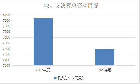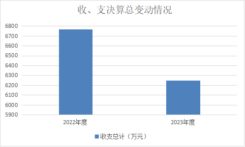 2023年度收、支总计均为1143.80万元。与2022年度相比,收、支总计减少33.05万元,降低2.8%,主要原因是:由于上年度补发了二年绩效工资,导致人员开支2022年度增加。
