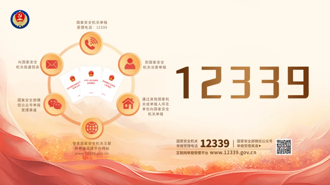 温馨提示:国家安全面前没有“局外人”,如若发现任何危害政治安全的可疑行为请及时拨打国家安全机关举报受理电话12339或者登录国家安全机关举报受理平台www.12339.gov.cn
