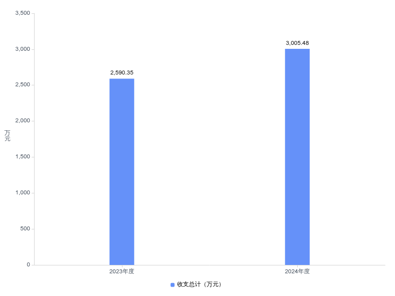 2024年度收、支总计均为3005.48万元。与2023年度相比,收、支总计增加415.13万元,增长16.0%,主要原因是用于人员经费及公用经费,确保各项工作的顺利开展。