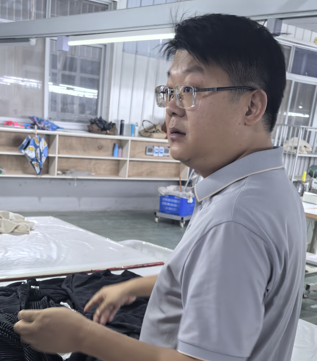 高石碑镇党委书记杜华安同志在艾颢制衣生产车间询问日常安全管理工作