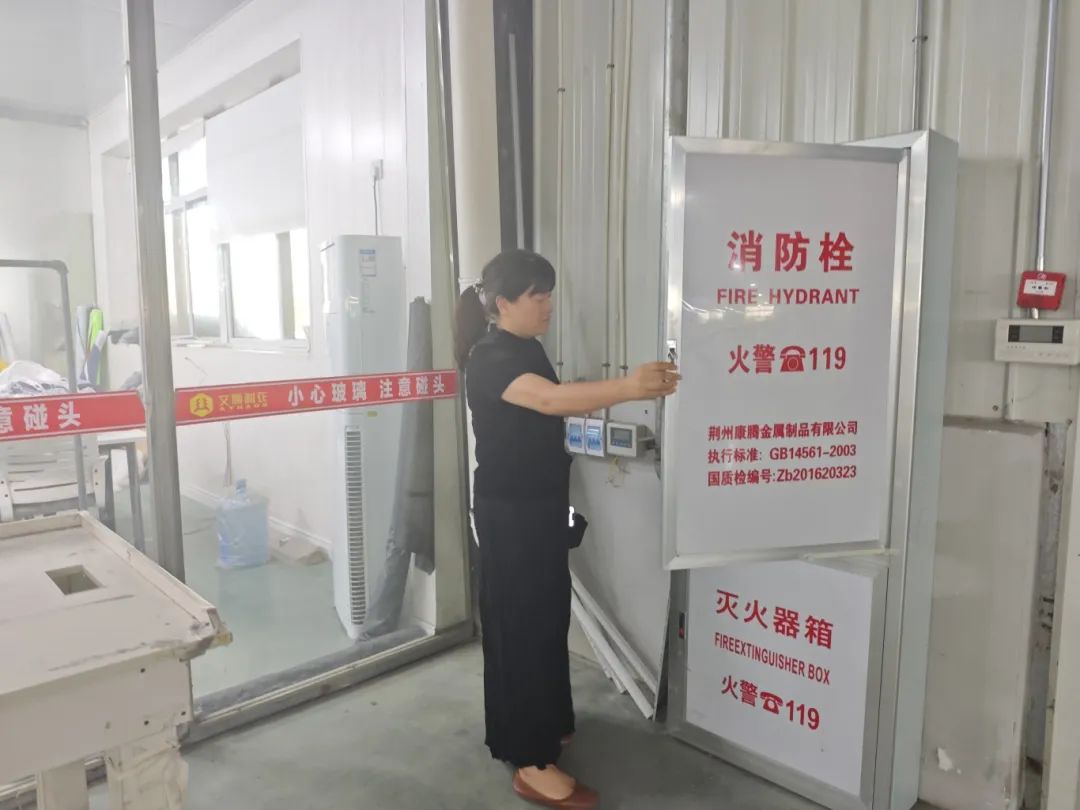 高石碑镇党委副书记、镇长张小艳同志在工厂车间检查消防器材