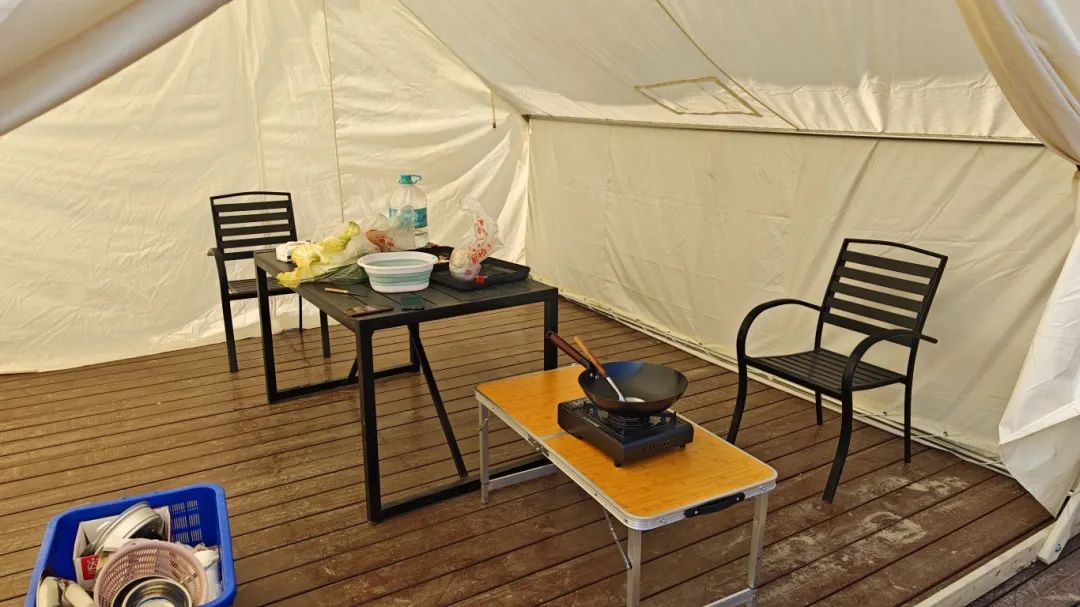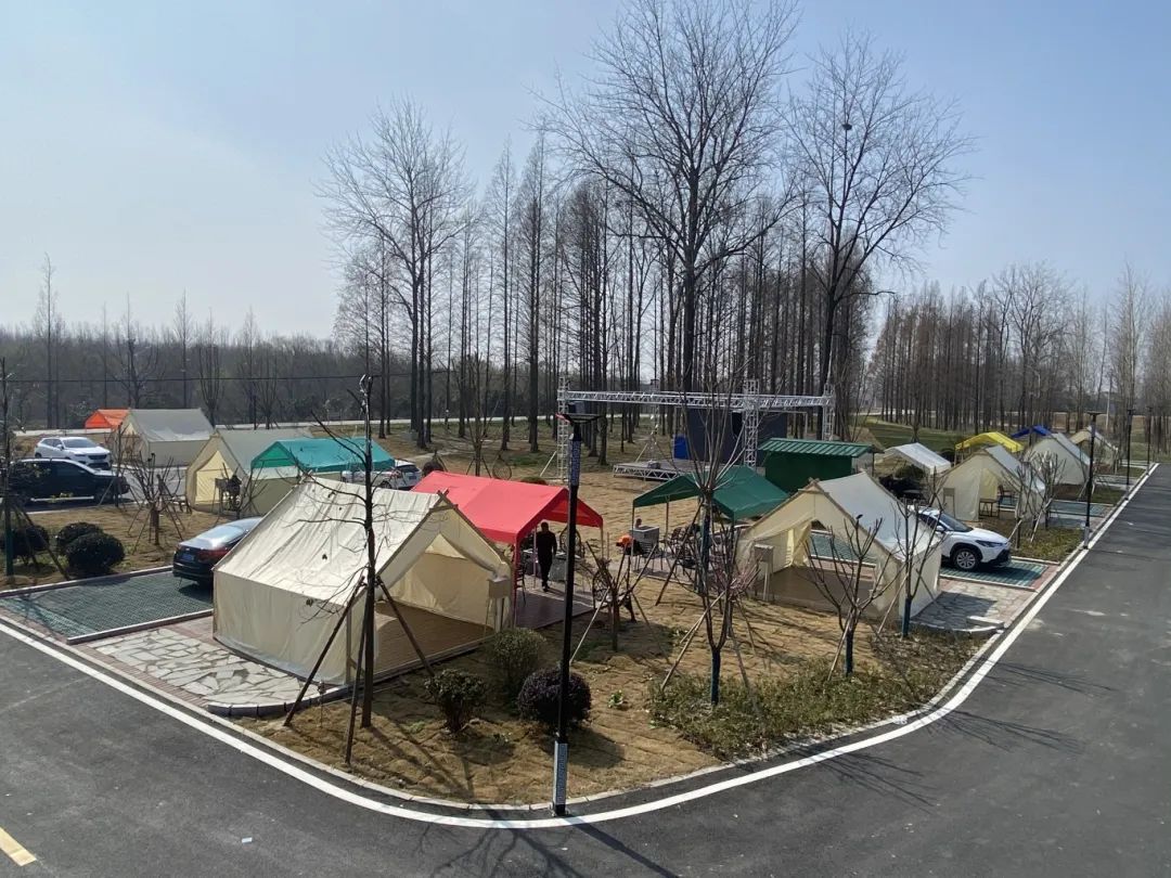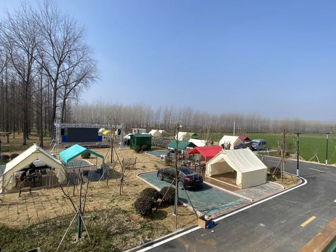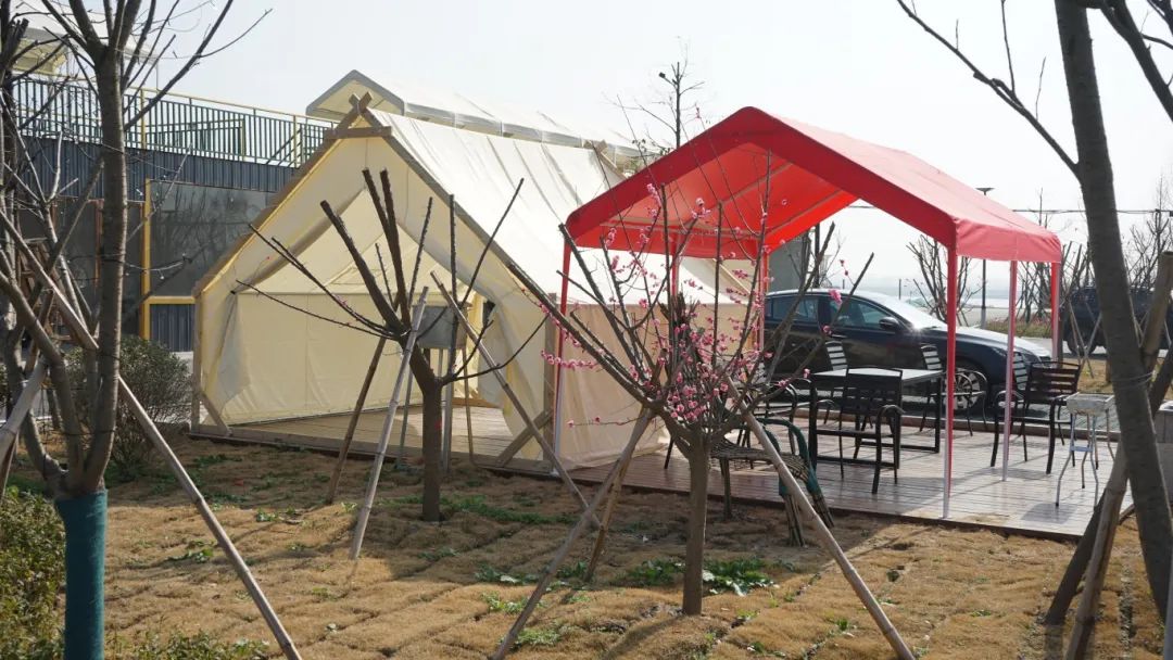 这里设施完善,提供优质服务。露营基地提供10个房车停车区,提供充电、补水、休息多功能补给站,建设遮阳棚、野餐桌、烧烤架及便利店等服务设施,提供露天舞台、影院,满足各群体需求。