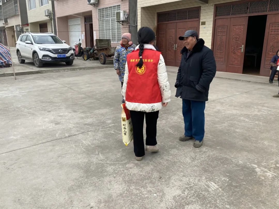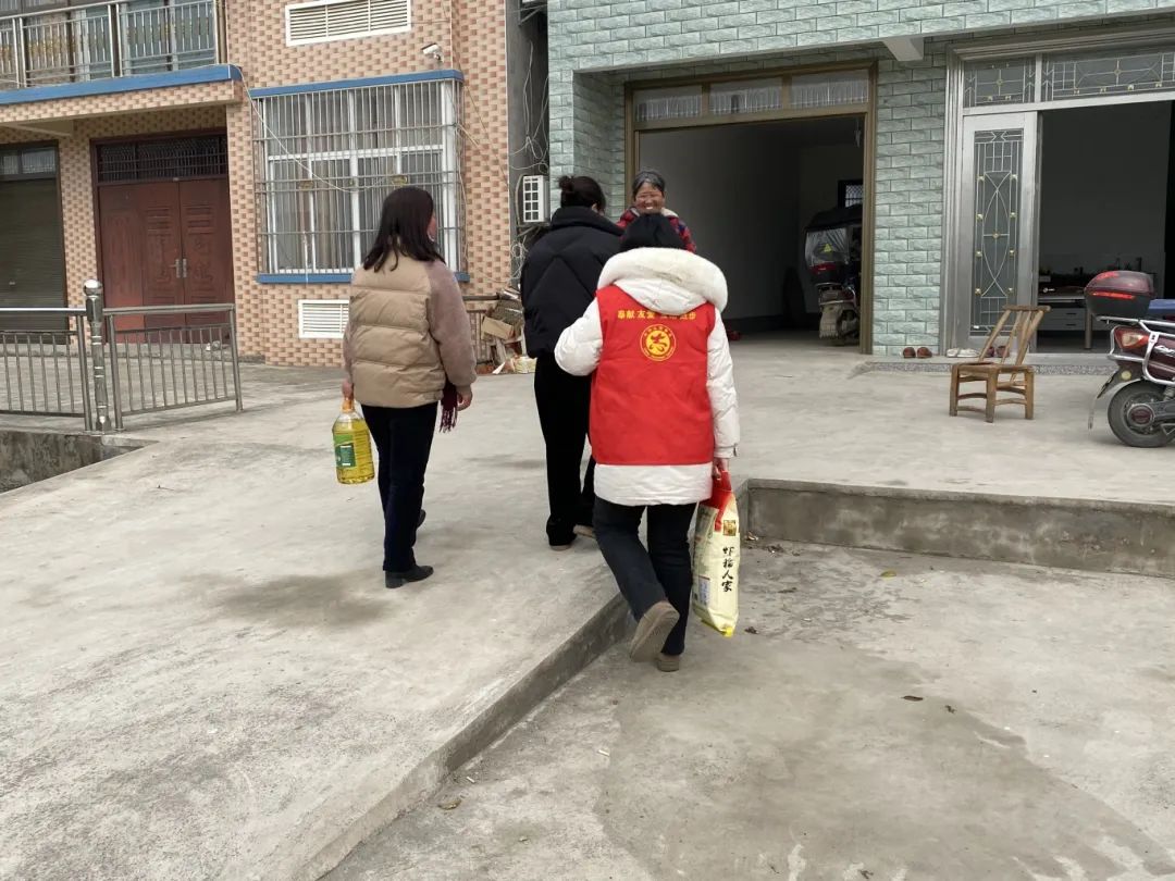 随后,志愿者们带着米、油等生活物资,入户看望辖区老人,详细询问她们的家庭情况,传递关怀与温暖。