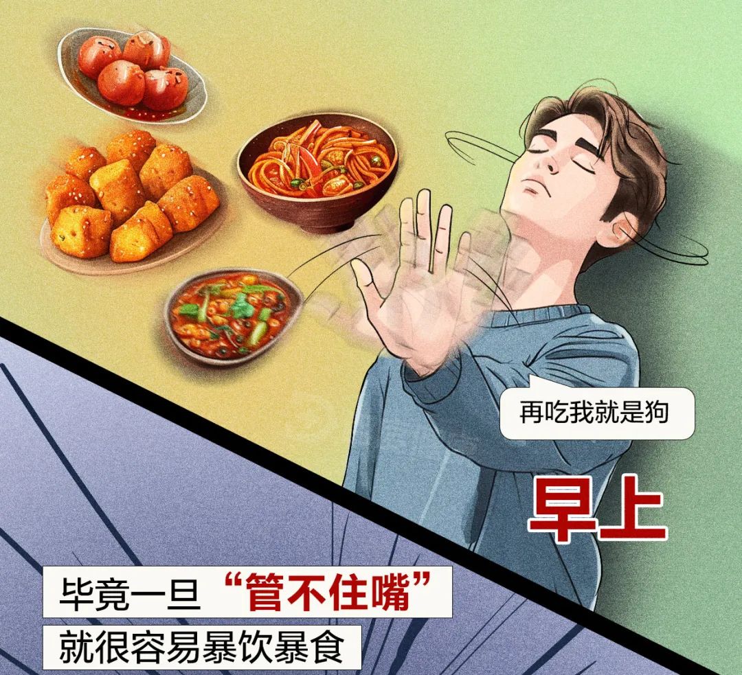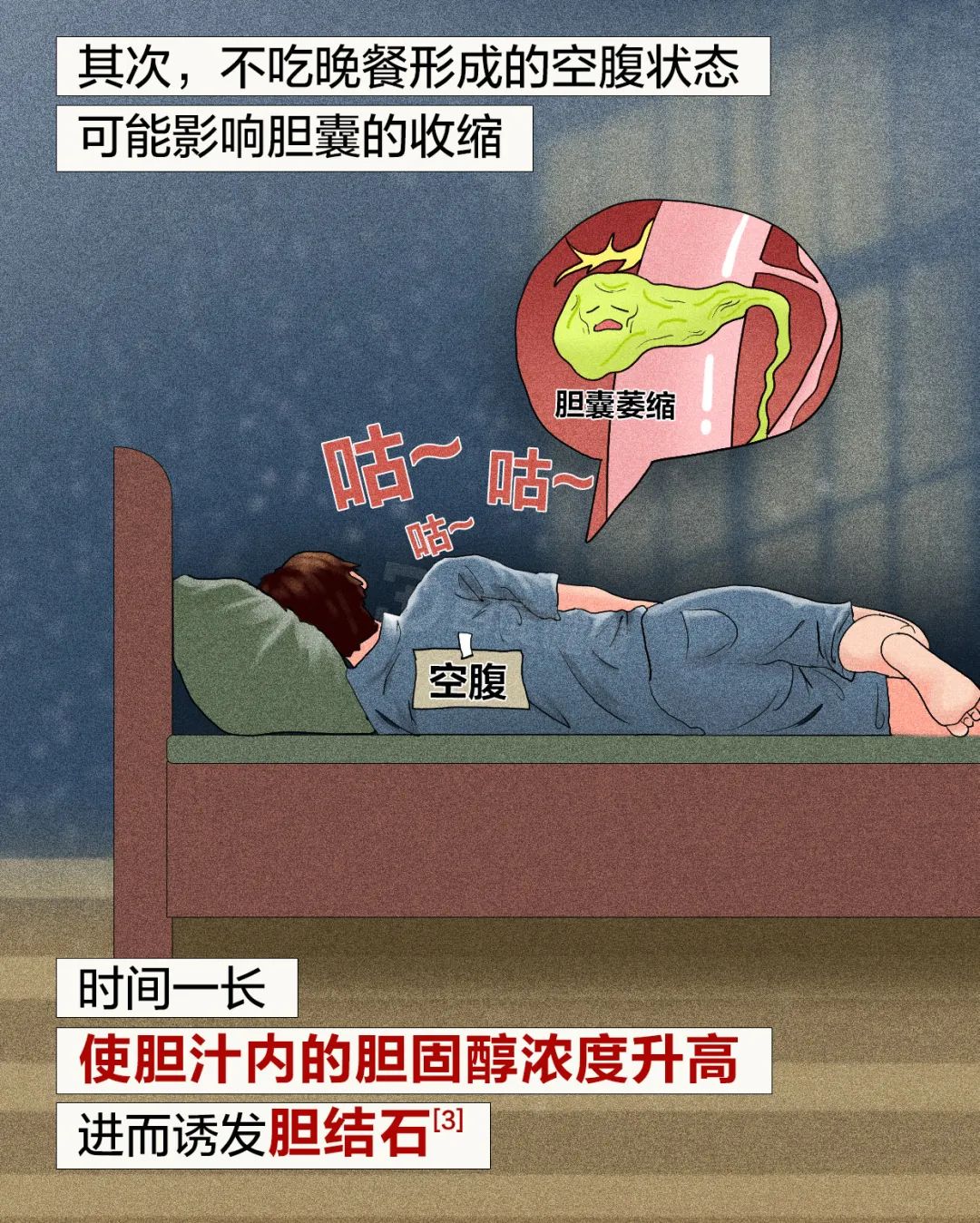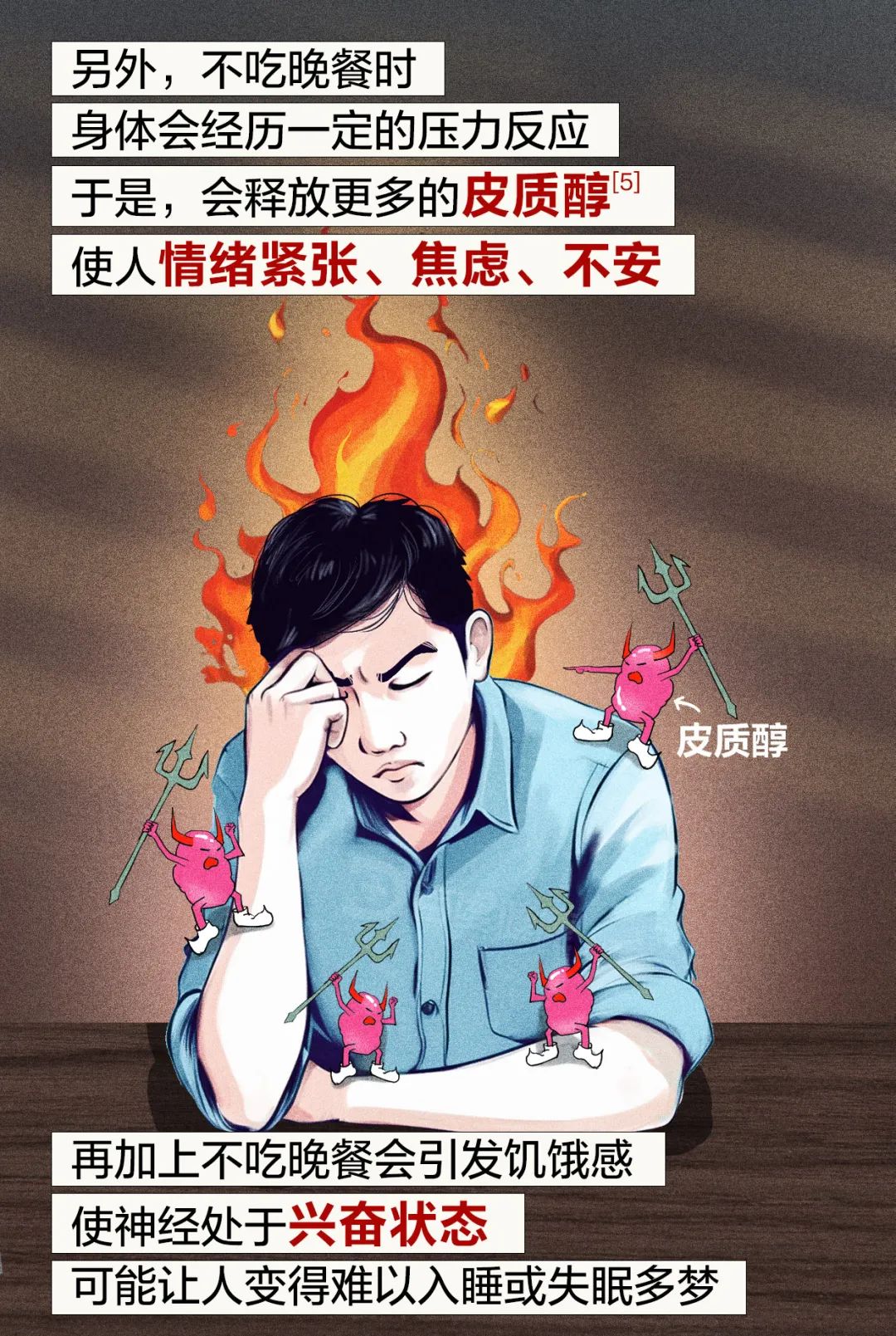 根据《中国居民膳食指南》[7]推荐,一日三餐的能量占比应该为3:4:3,晚餐吃个七分饱就够了,吃太饱反而适得其反。