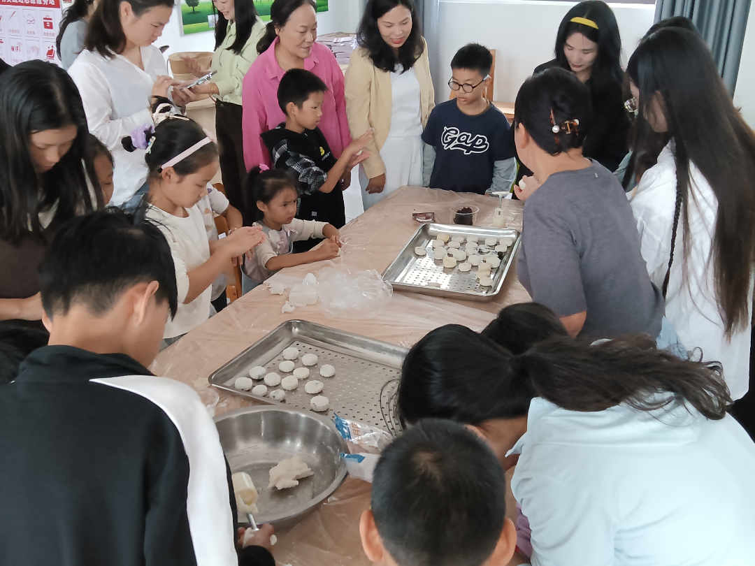 为让留守儿童在中秋佳节前感受到亲情般的关怀与温暖,9月27日,管理区妇联组织辖区爱心妈妈与“虾嫂”爱心妈妈,在莫岭队农家书屋开展了以“饼载心意 遥寄相思”为主题的“雏燕暖栖”关爱活动。活动以手工制饼为情感纽带,为留守儿童送上满满的中秋温暖。