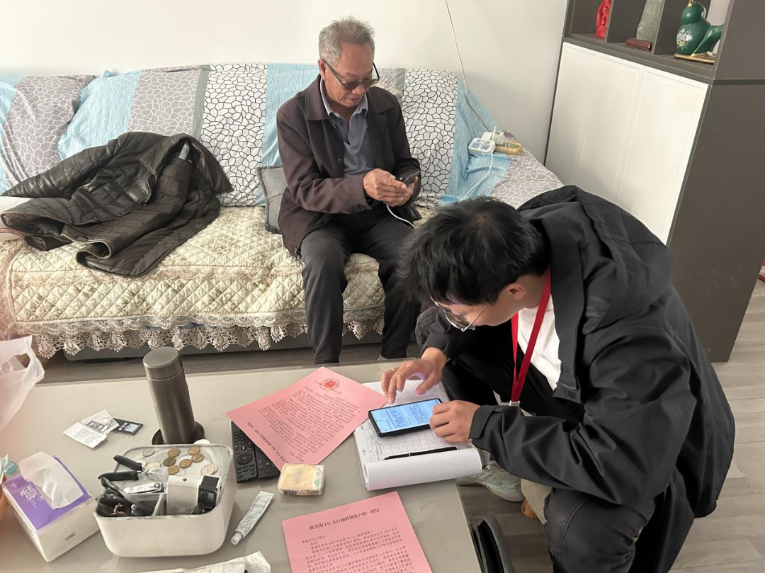 调查过程中,社区调查员严格遵循《中华人民共和国统计法》要求,亮证入户、规范操作。针对不同群体分类施策:对于熟悉智能手机操作的居民,引导其自主填报,提升效率;对于操作不便的居民,尤其是老年群体,调查员耐心细致地入户登记,逐一核实家庭每位成员的姓名、身份证号、性别、年龄、民族、教育、迁移流动等基本信息。每到一户,调查员都详细解释调查内容,承诺对居民个人信息严格保密,让居民放心、安心地提供数据。