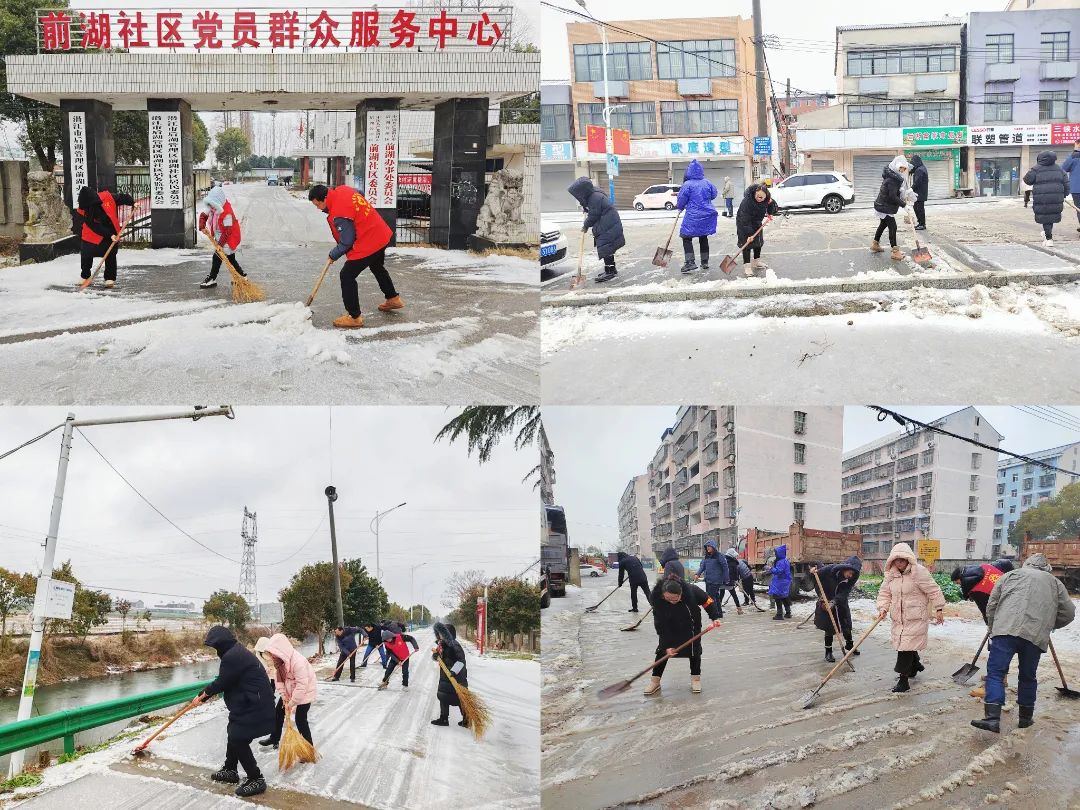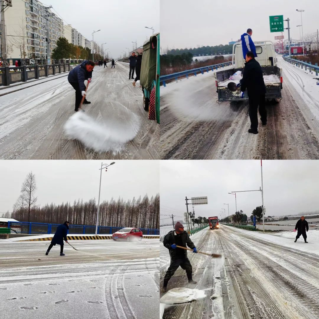以雪为令,管理区、各办事处(社区)、生产队各级干部迅速进入“战斗状态”。机关全体工作人员下沉至各联系点,与各办事处、社区、生产队干部以及志愿者们奔走在在各主干道路开展铲雪作业,通过清扫积雪、铲冰、撒盐等方式,消除路面冰雪,保证广大居民群众出行安全。此外,还通过微信群、广播、入户走访排查等方式积极向辖区居民推送寒潮天气预警、温馨提示等信息,增强居民安全防范意识。