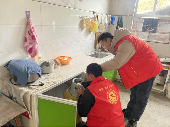 检查组精准聚焦老年家庭、老旧房屋等重点群体与场所,逐户上门排查风险隐患,重点核查液化气软管老化渗漏、灶具熄火保护装置失灵、饮用水水质安全等关键问题。检查期间,工作人员现场向居民细致讲解用水用气应急处置要点,手把手指导大家掌握日常自查方法,提升居家安全防护能力。
