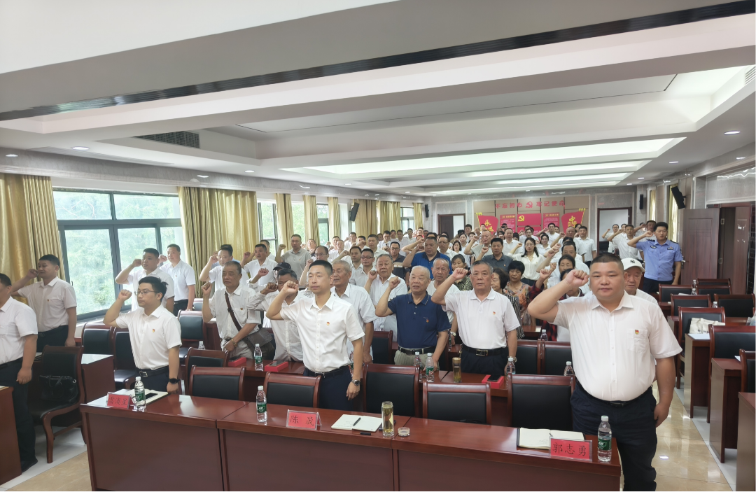 6月27日上午,后湖管理区举行庆祝中国共产党成立103周年大会。在激昂雄壮的国歌声中,大会拉开帷幕。会上,管理区党委书记赵忠海带领9名纳新党员进行入党宣誓,全体党员一起重温入党誓词。
