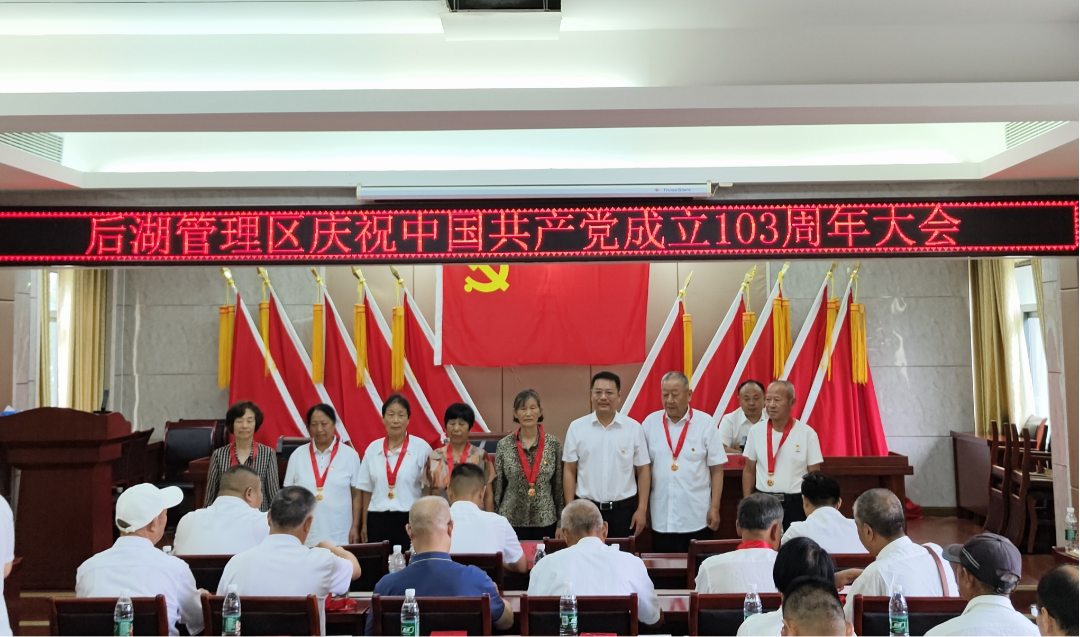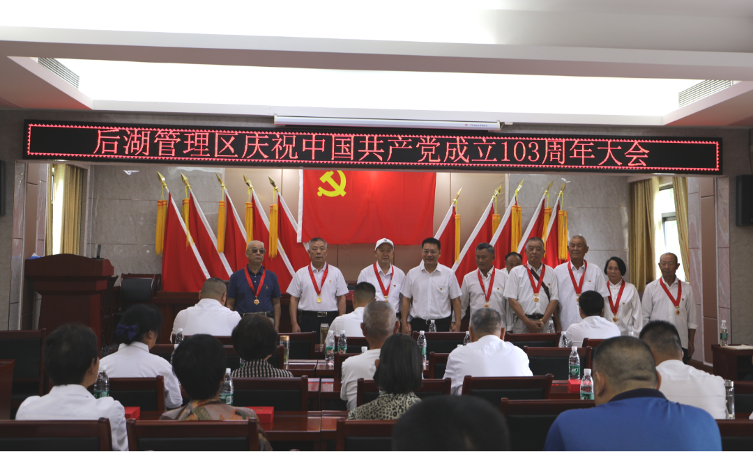 为迎接中国共产党成立103周年,回顾党的光辉历程,讴歌党的丰功伟绩,激发广大党员干部不忘初心、牢记使命,近日后湖管理区开展庆祝建党成立103周年系列活动。