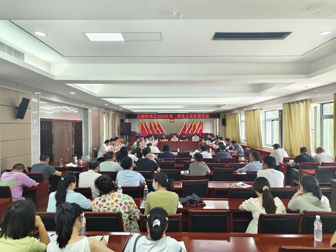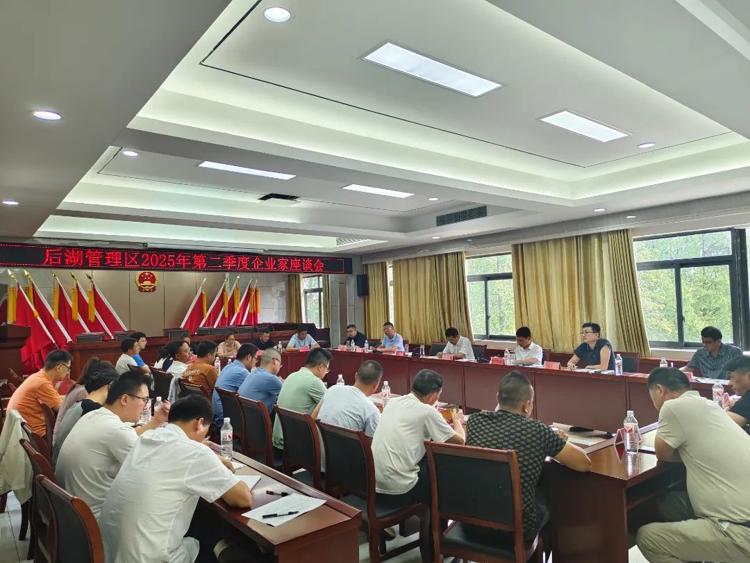 为进一步优化营商环境,畅通政企沟通渠道,凝聚发展共识,7月15日,后湖管理区召开第二季度企业家座谈会。后湖管理区相关领导、辖区内19家企业代表、各企业“红领书记”及对口企业青年成长培养对象参加会议。