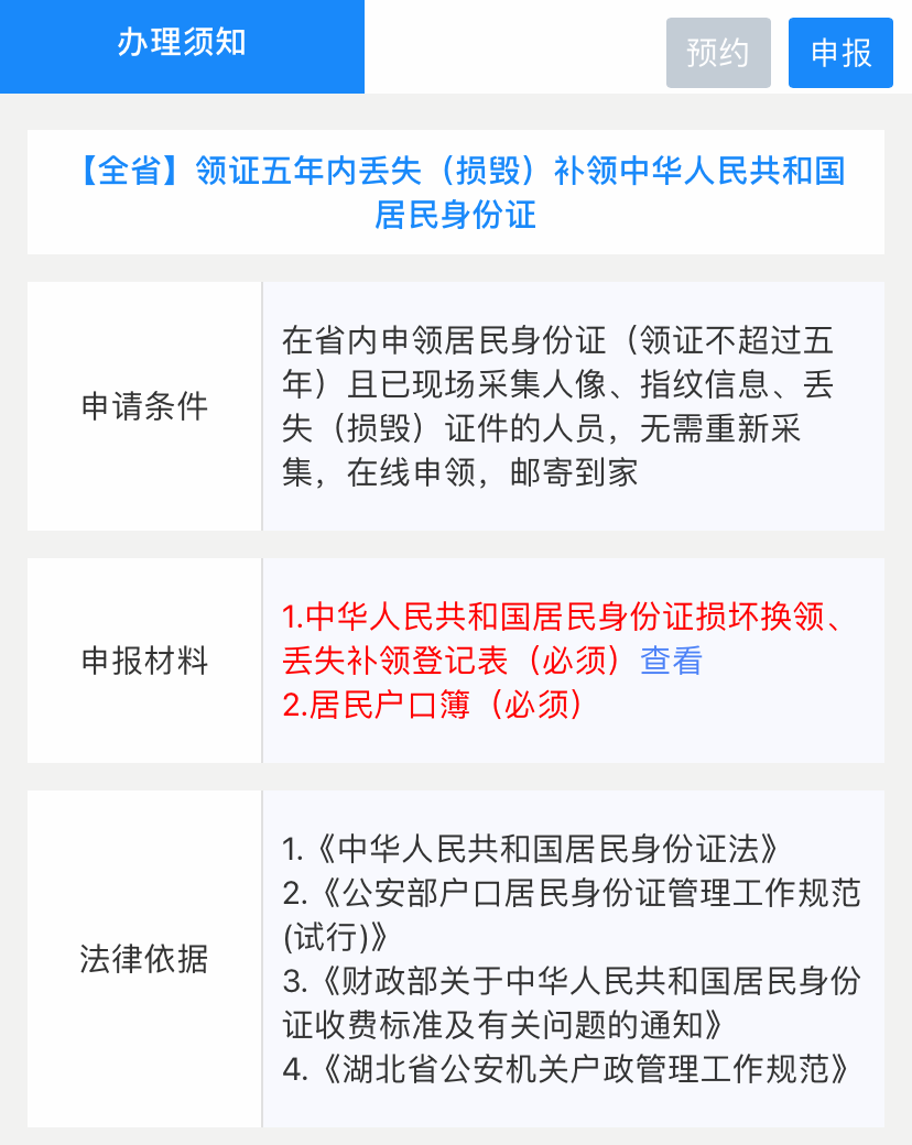 此前,湖北省公安厅推出了【领证两年内丢失(损毁)补领中华人民共和国居民身份证】事项,对于在省内申领居民身份证(领证不超过两年)且已现场采集过人像、指纹信息的群众,提供了证件丢失(损毁)后线上补领的渠道,无需重新采集信息,可直接使用丢失(损毁)证件的人像照片、指纹信息!