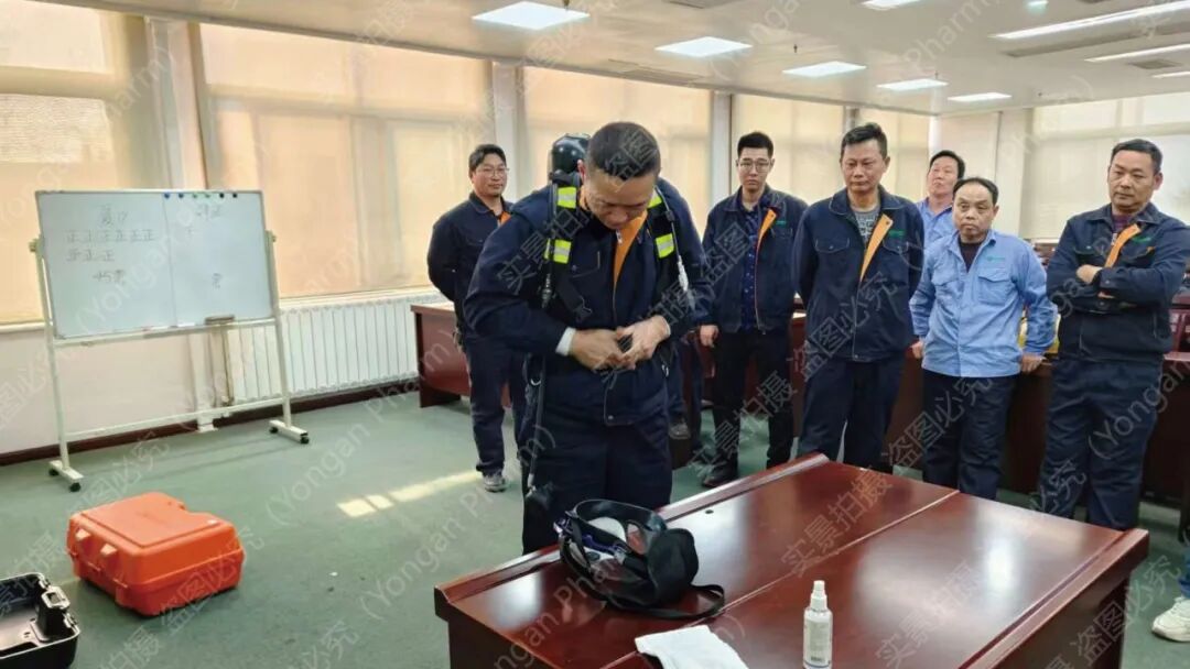 各小组紧张有序的开展“空气呼吸器佩戴+心肺复苏”双技能实战化演练。演练过程中,员工们严格按照操作规范执行,从呼吸器佩戴的密封检测,到心肺复苏的按压频率与深度,每个环节都力求精准。通过本次演练,员工应急救援的规范性与熟练度显著提升,切实做到“人人会救援、个个能应急”。