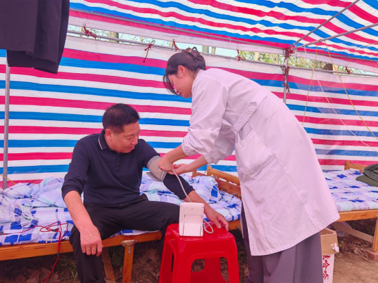 医护人员携带便携式医疗设备,逐点为防汛人员测量血压、血糖,进行心肺功能听诊和中医体质辨识,累计服务70余人次。针对部分年龄较大、患有高血压等基础性疾病的值班人员,医护人员现场提出用药调整和休息建议,并建立健康档案跟踪管理,同时服务队立即向防汛指挥部提交调班建议,协调将部分健康情况有异的人员从夜班调整至白班,确保防汛力量“健康在线”。