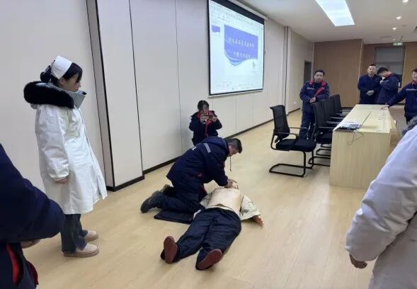 活动现场,医护团队紧贴化工生产工伤风险与日常突发状况,采用“理论讲解+情景模拟+实操演练”相结合的方式,围绕心肺复苏(CPR)、自动体外除颤器(AED)使用、海姆立克急救法、创伤包扎等常见急症处理展开培训。培训师通过人体模型演示操作步骤,详细讲解按压位置、频率、深度等关键要点,并针对企业生产中可能遇到的触电、机械伤害等突发场景,模拟现场急救流程,确保员工听得懂、学得会、用得上。