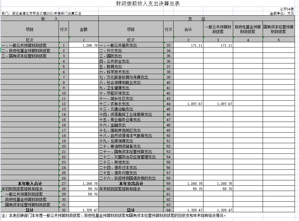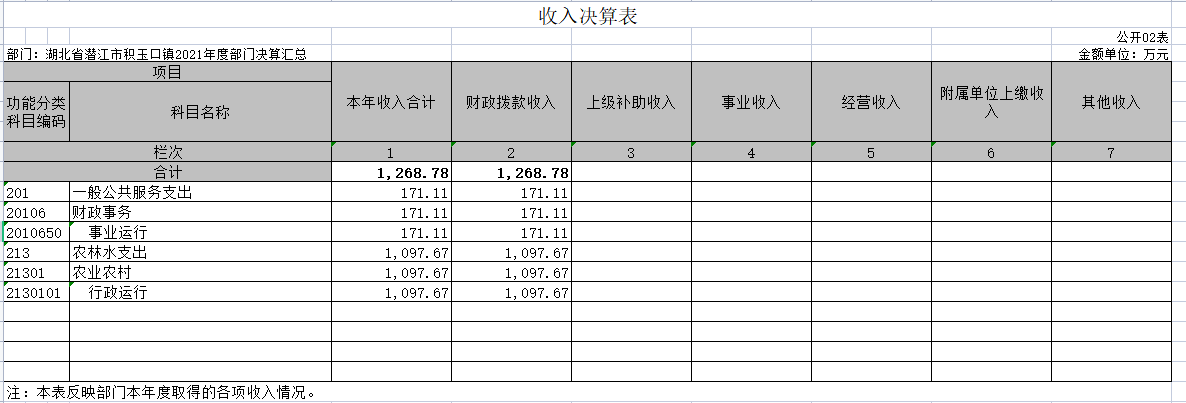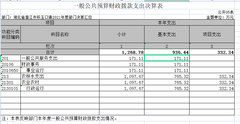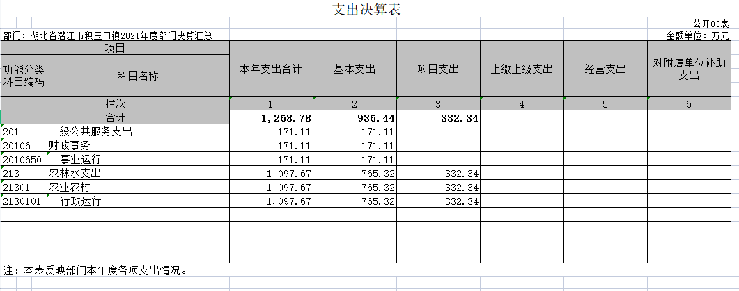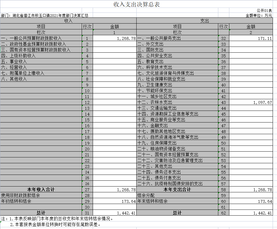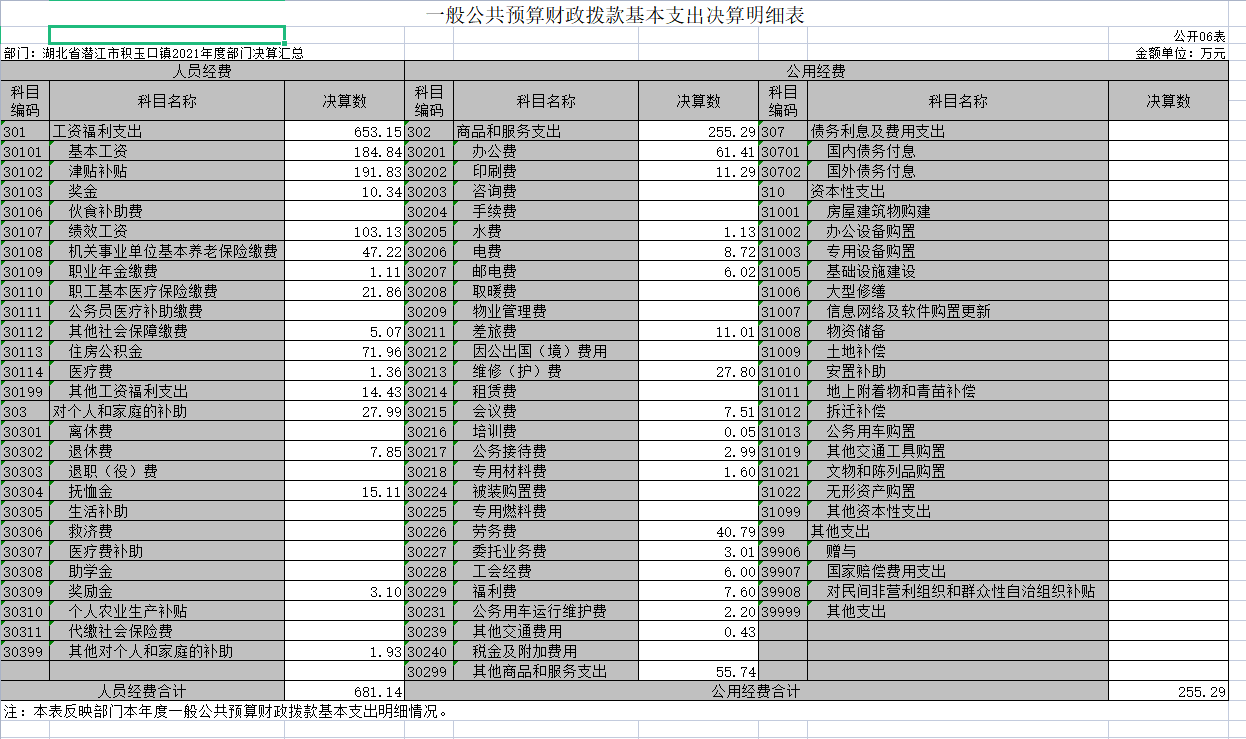 第二部分 潜江市积玉口镇2021年度部门决算表
