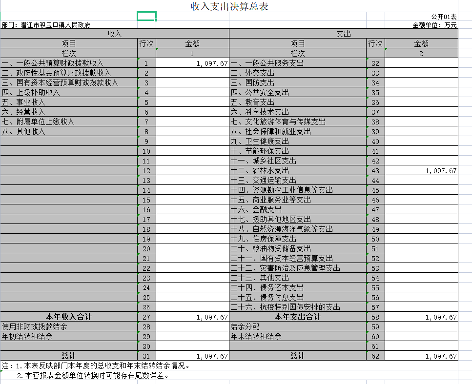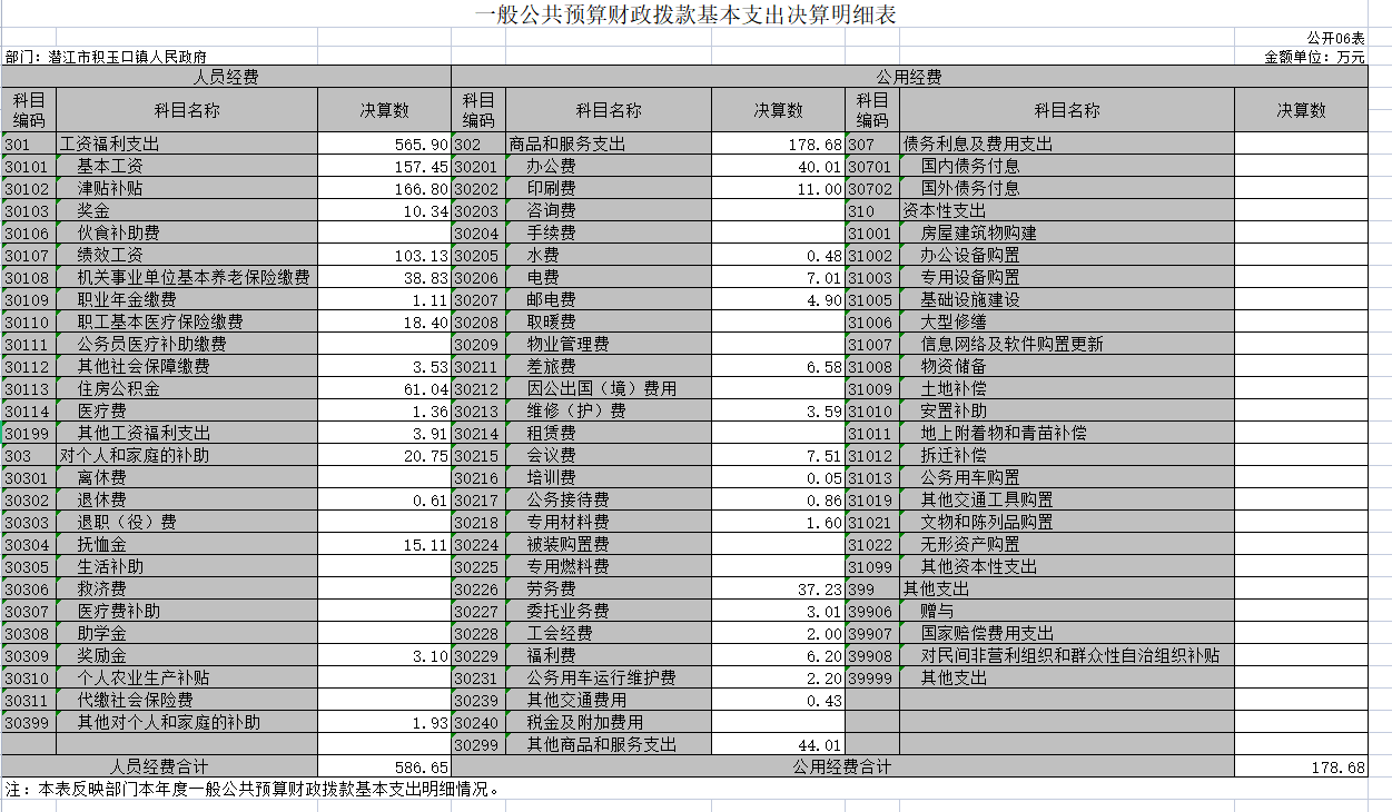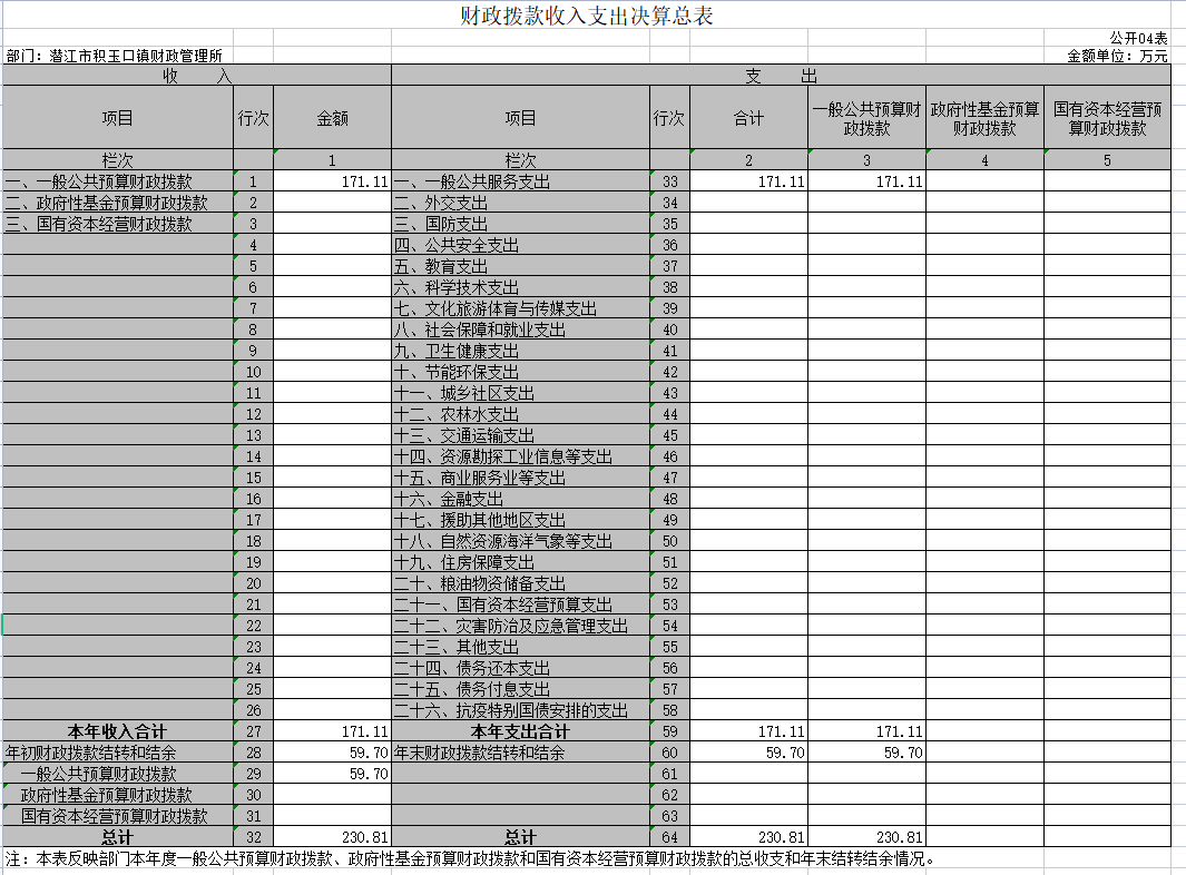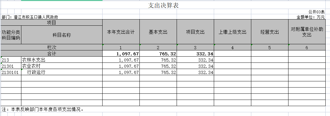第二部分 潜江市积玉口镇2021年度部门决算表