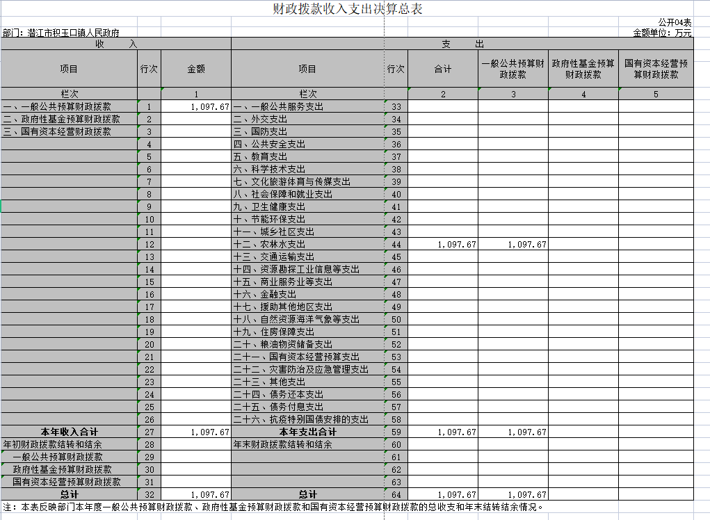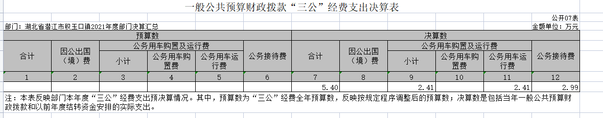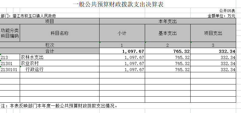 潜江市积玉口镇2021年度部门