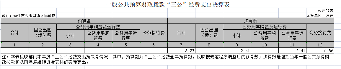 (十六)“三公”经费:纳入财政一般公共预算管理的“三公”经费,是指市直部门用一般公共预算财政拨款安排的因公出国(境)费、公务用车购置及运行费和公务接待费。其中,因公出国(境)费反映单位公务出国(境)的国际旅费、国外城市间交通费、住宿费、伙食费、培训费、公杂费等支出;公务用车购置及运行费反映单位公务用车购置支出(含车辆购置税、牌照费)及燃料费、维修费、过桥过路费、保险费、安全奖励费用等支出;公务接待费反映单位按规定开支的各类公务接待(含外宾接待)费用。