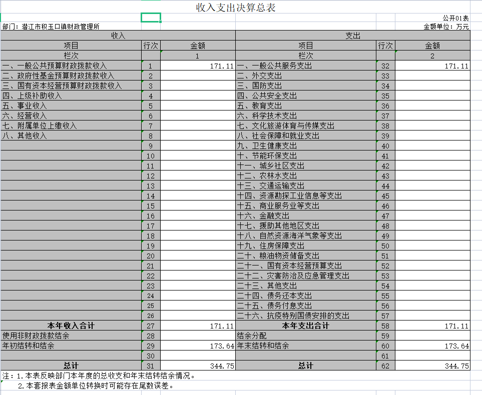 一、收入支出决算总表