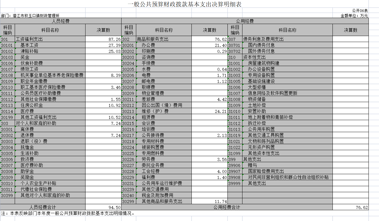 (十三)基本支出:指为保障机构正常运转、完成日常工作任务而发生的人员支出和公用支出。