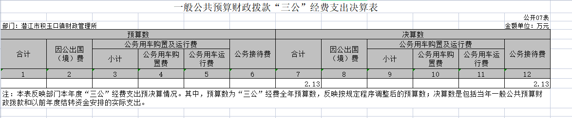 七、一般公共预算财政拨款“三公”经费支出决算表
