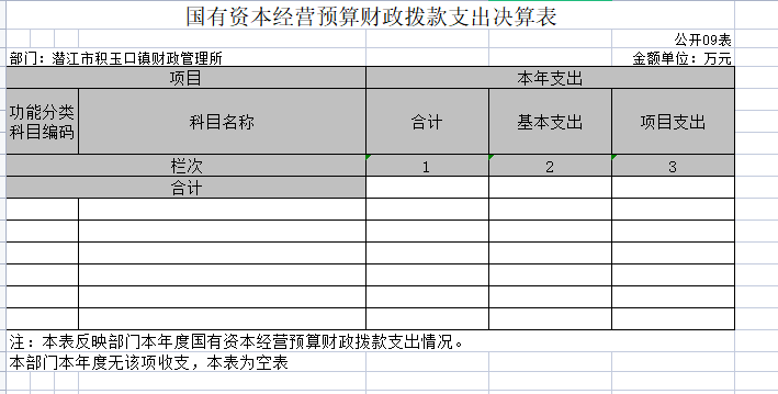 九、国有资本经营预算财政拨款支出决算表
