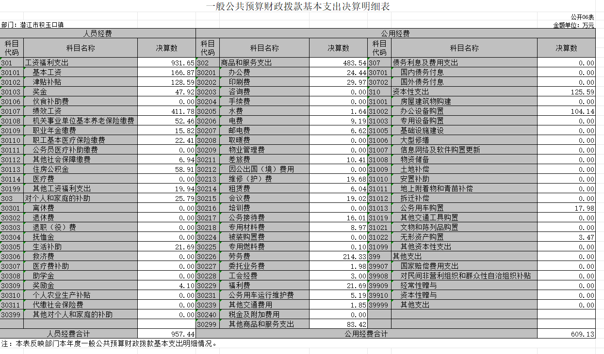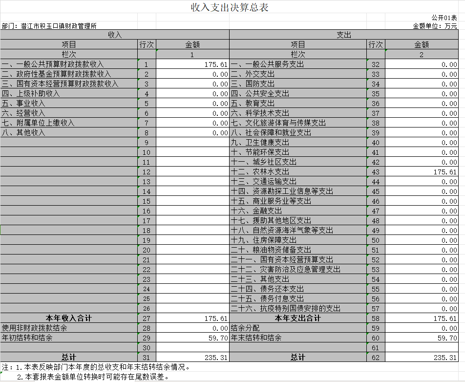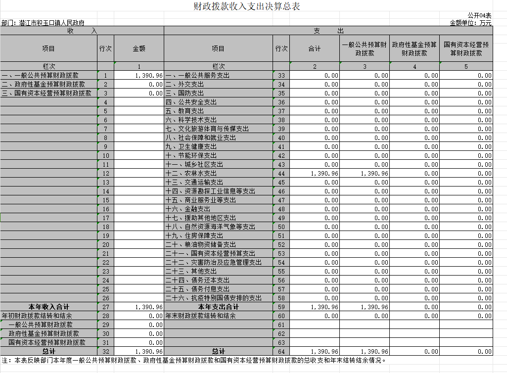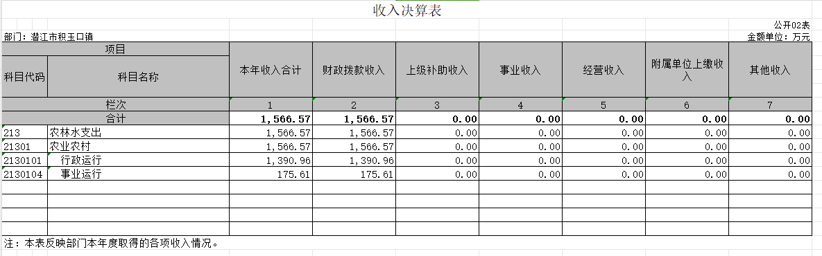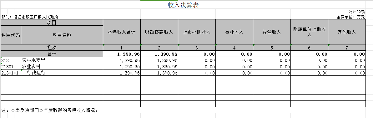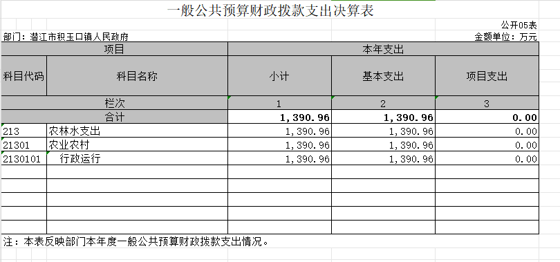 第二部分 潜江市积玉口镇2022年度部门决算表