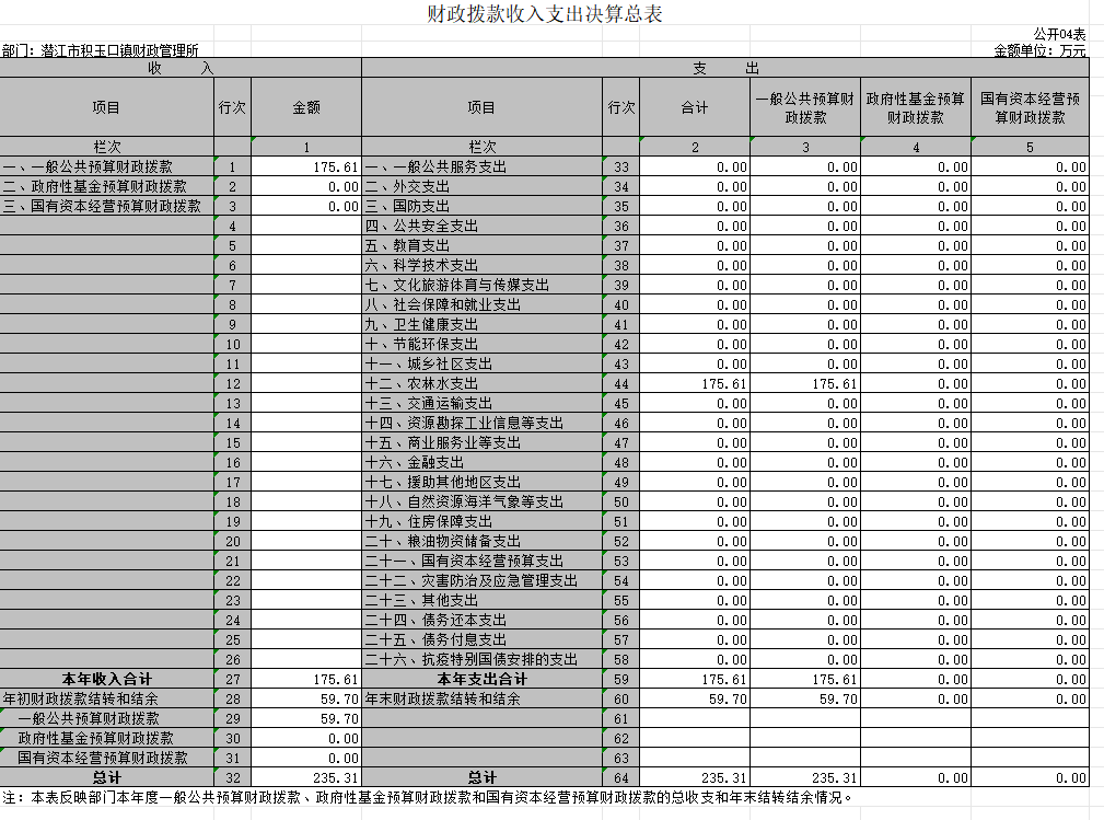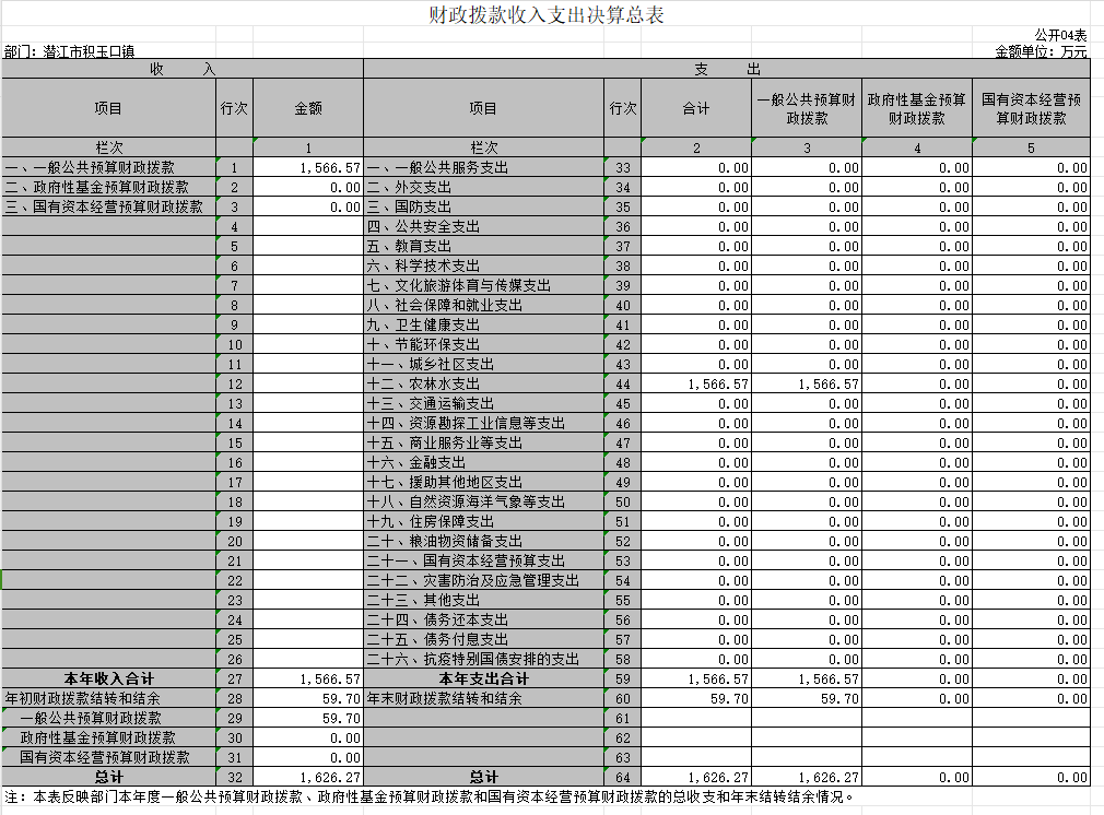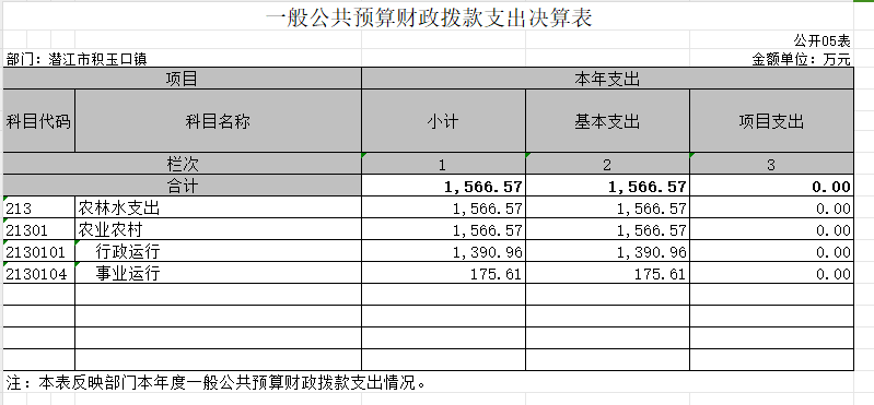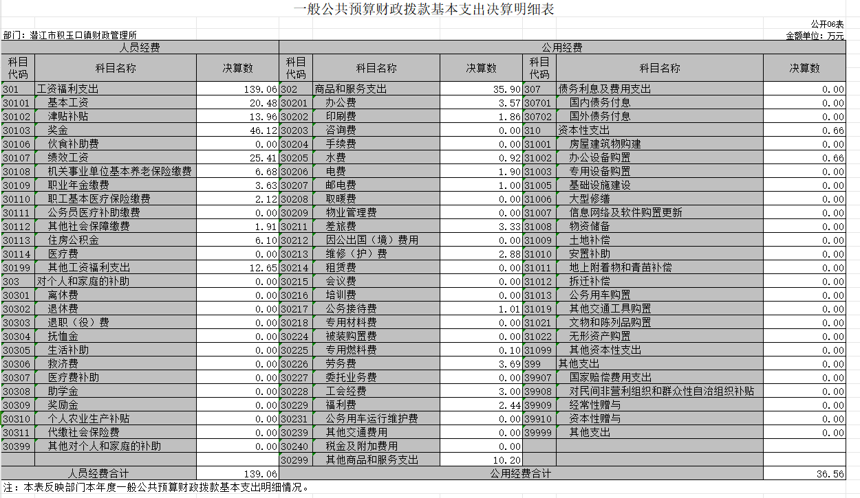 第二部分 潜江市积玉口镇2022年度部门决算表