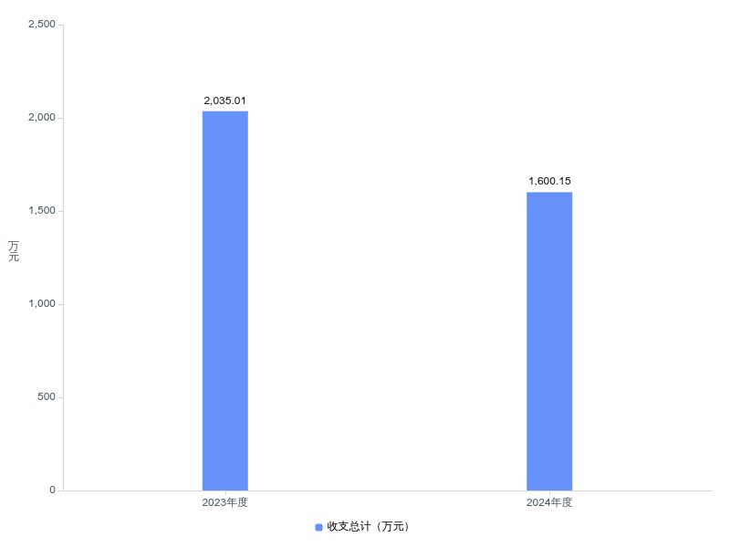 2024年度收、支总计均为1600.15万元。与2023年度相比,收、支总计减少434.86万元,下降21.4%,主要原因是落实“过紧日子”要求,缩减了各项开支。