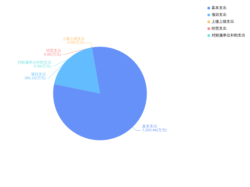 2024年度支出合计1485.66万元,与2023年度相比,支出合计减少329.50万元,下降18.2%。其中:基本支出1203.44万元,占本年支出81.0%;项目支出282.22万元,占本年支出19.0%;上缴上级支出0.00万元,占本年支出0.0%;经营支出0.00万元,占本年支出0.0%;对附属单位补助支出0.00万元,占本年支出0.0%。