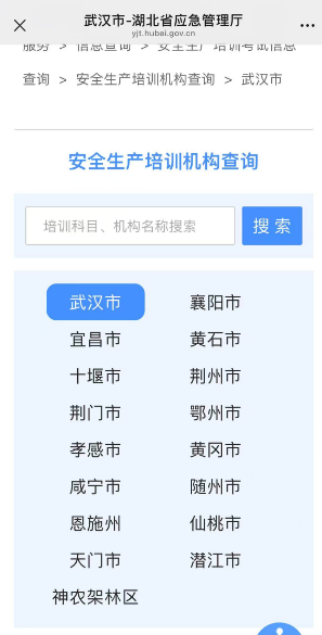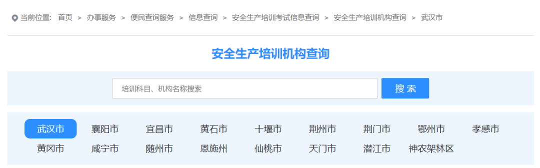 点击后,进入培训机构信息查询页面,可按市州筛选查看。
