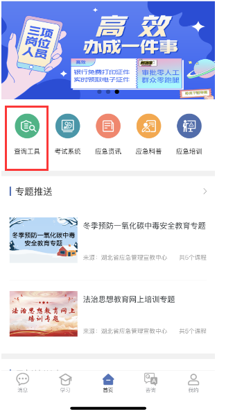 进入小程序首页后,点击“查询工具”按钮,未登录用户请根据提示完成登录。