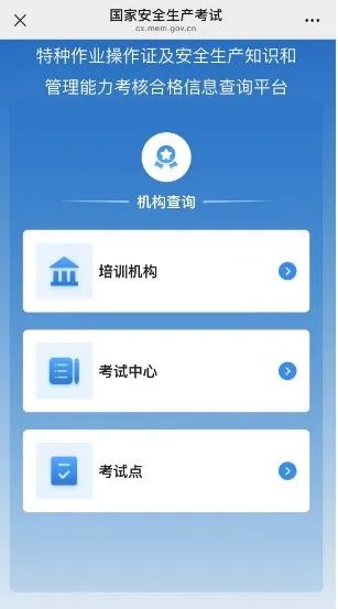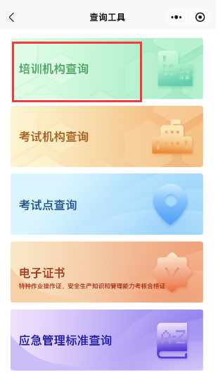 点击“安全生产培训考试信息查询”,选择“安全生产培训机构查询”。