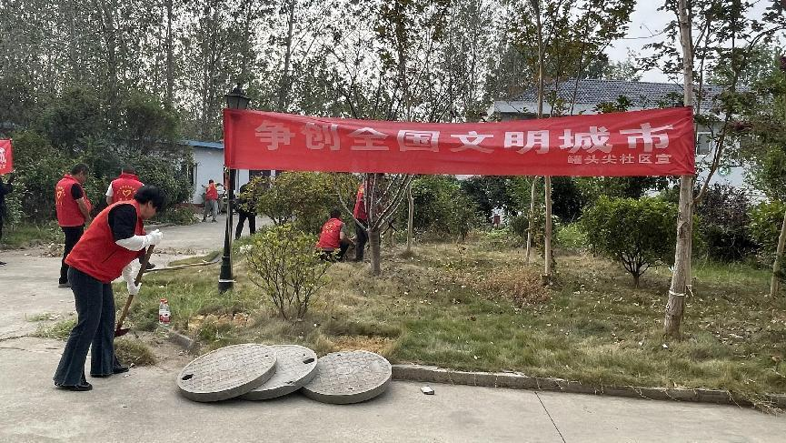 组织社区发动党员群众在各小区、集贸市场等环境卫生整治重点区域,进行“全覆盖、拉网式”清理整治,对居民乱堆乱放的杂物、生活垃圾等卫生死角进行集中整治,并对道路沿线垃圾进行地毯式清扫,彻底消除卫生死角和盲点,做到垃圾无积存,环境展新颜。