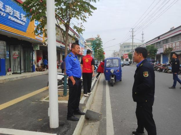 村镇建设服务中心组织志愿者、群众一起引导居民文明驾驶规范停车,对乱堆乱码、私搭乱建等行为进行教育,督促沿街单位及商户落实“门前三包”责任制,共同维护集镇秩序及环境卫生。