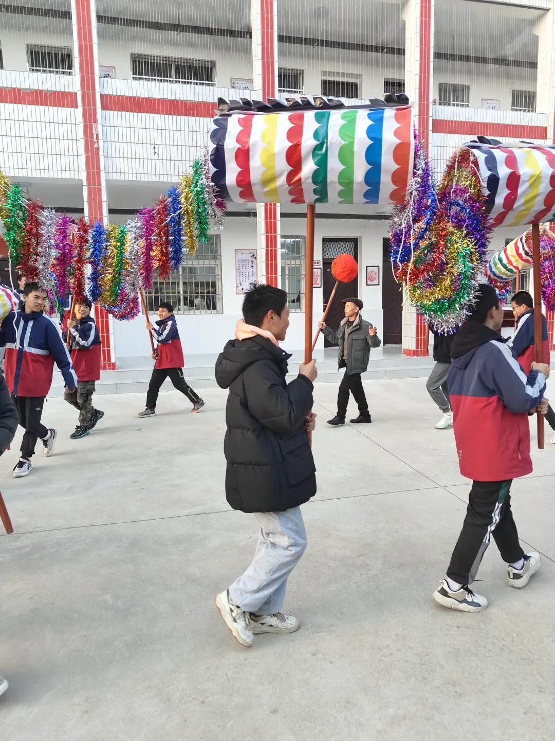 在课堂上,表演专班用通俗易懂的语言向同学们讲解了烛龙知识、技巧及舞龙精神,详细讲解舞龙的姿态、力度、步伐、动作等基本要领,认真教授游龙、穿腾、翻滚等动作技巧,学生们一边仔细听,一边在老师的指导下认真练习,还认真学习了舞龙锣鼓的打法。