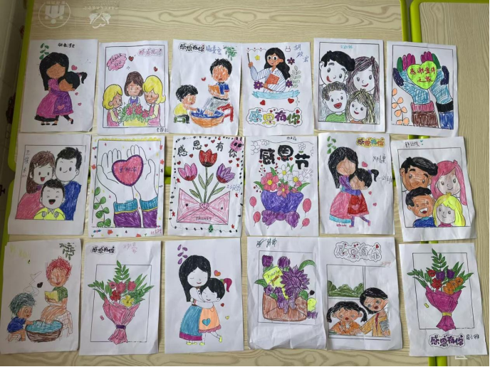 最热闹的当数创意绘画环节。孩子们拿起画笔,发挥奇思妙想,将对父母、老师、同伴的感恩之情融入画作。五彩的花朵、温馨的家庭场景、可爱的祝福文字,一幅幅充满童趣的作品,成为最特别的感恩礼物。童伴妈妈还鼓励孩子们将画作送给感恩的人,让温暖持续传递。