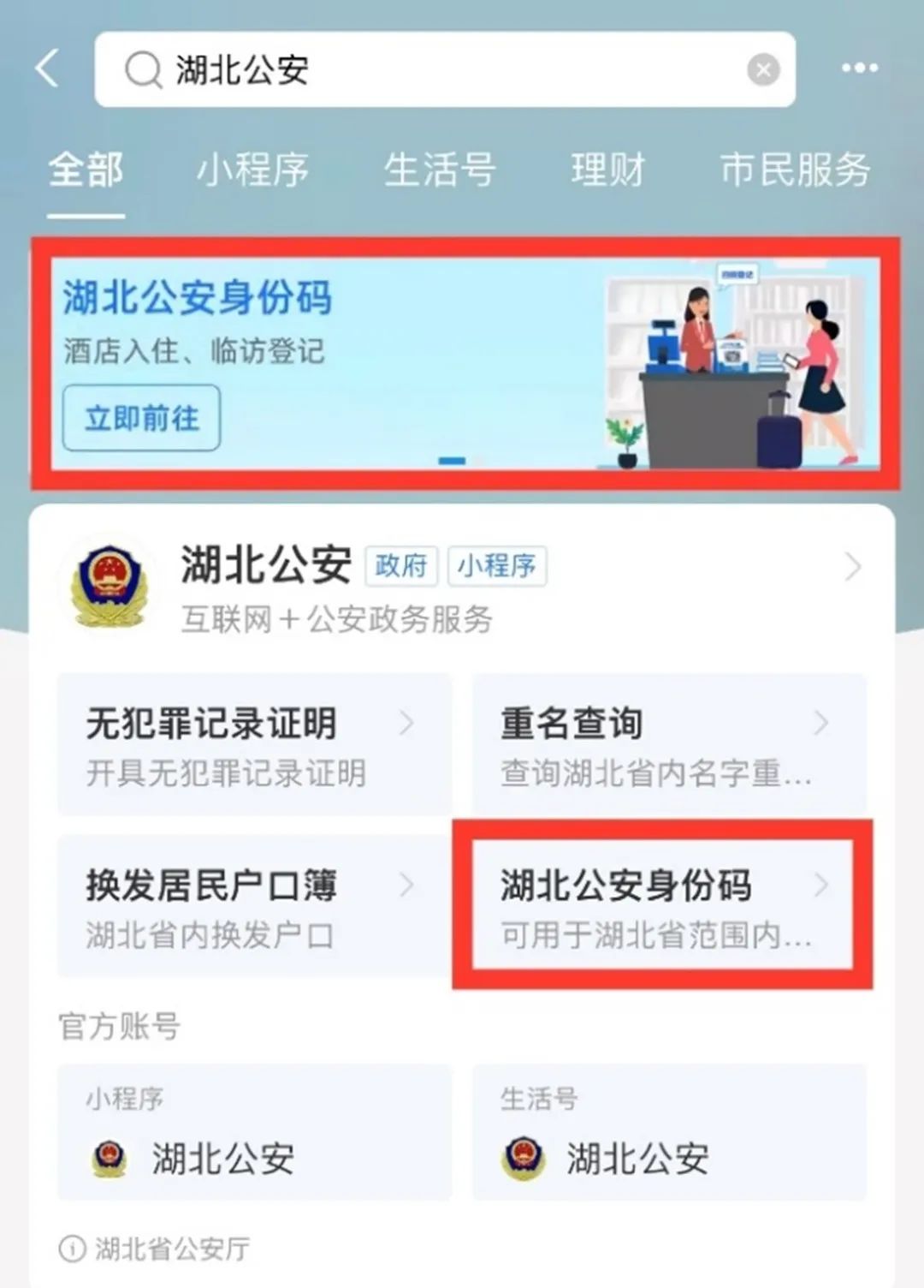01支付宝搜索并关注湖北公安