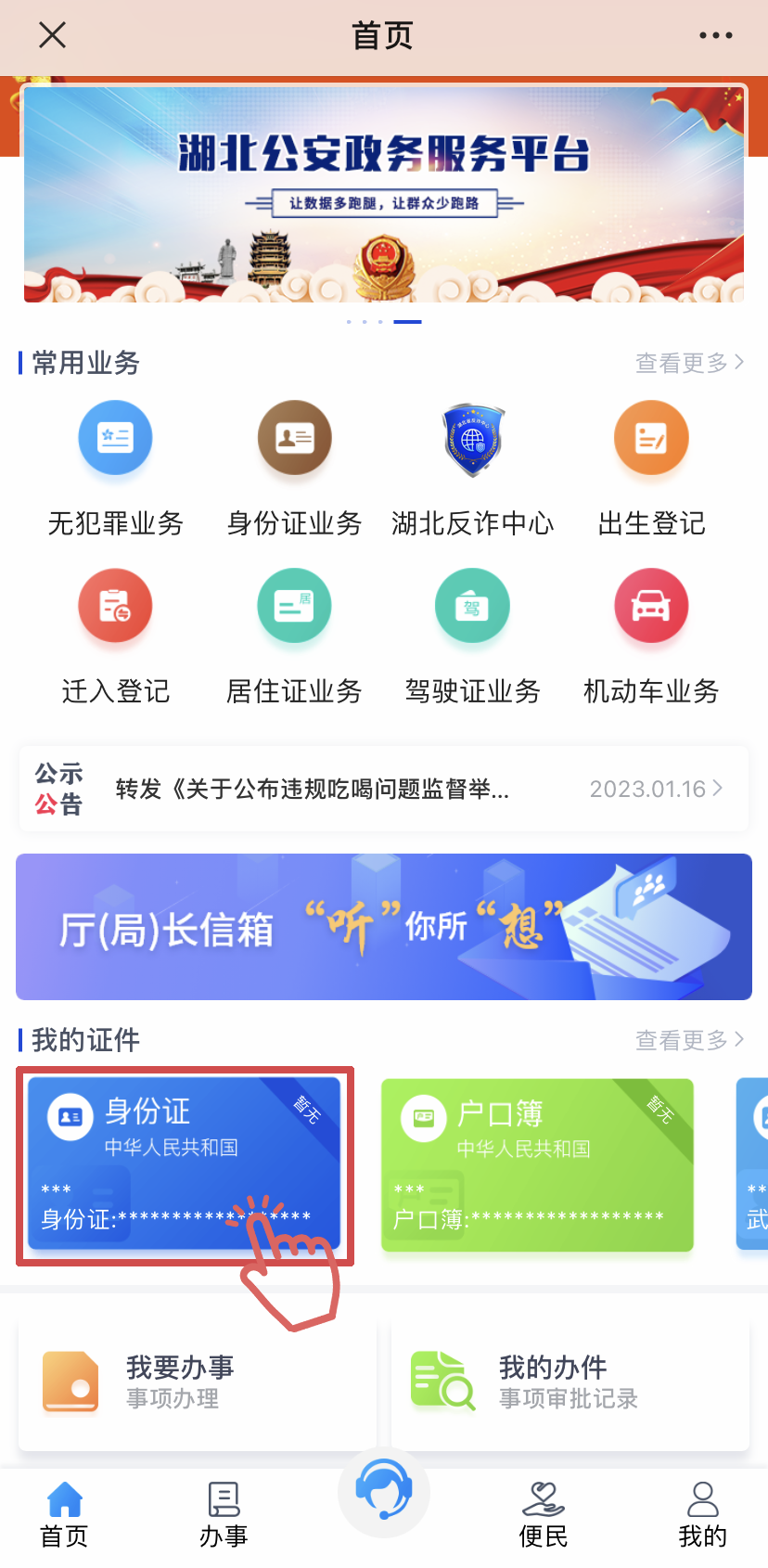 02点击【湖北公安身份码】