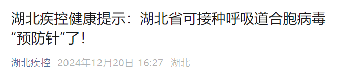 虽然全球尚无广泛使用的RSV疫苗,但是,湖北省有了可接种的“预防针”——呼吸道合胞病毒单克隆抗体。