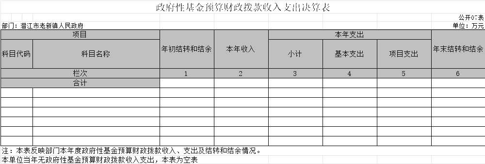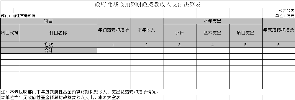 (如果本部门没有政府性基金预算财政拨款收入,也没有使用政府性基金预算财政拨款安排的支出,则写本单位当年无政府性基金预算财政拨款收入支出,同时在公开空白的“2023年度政府性基金预算财政拨款收入支出决算表(表7)”下作说明)。